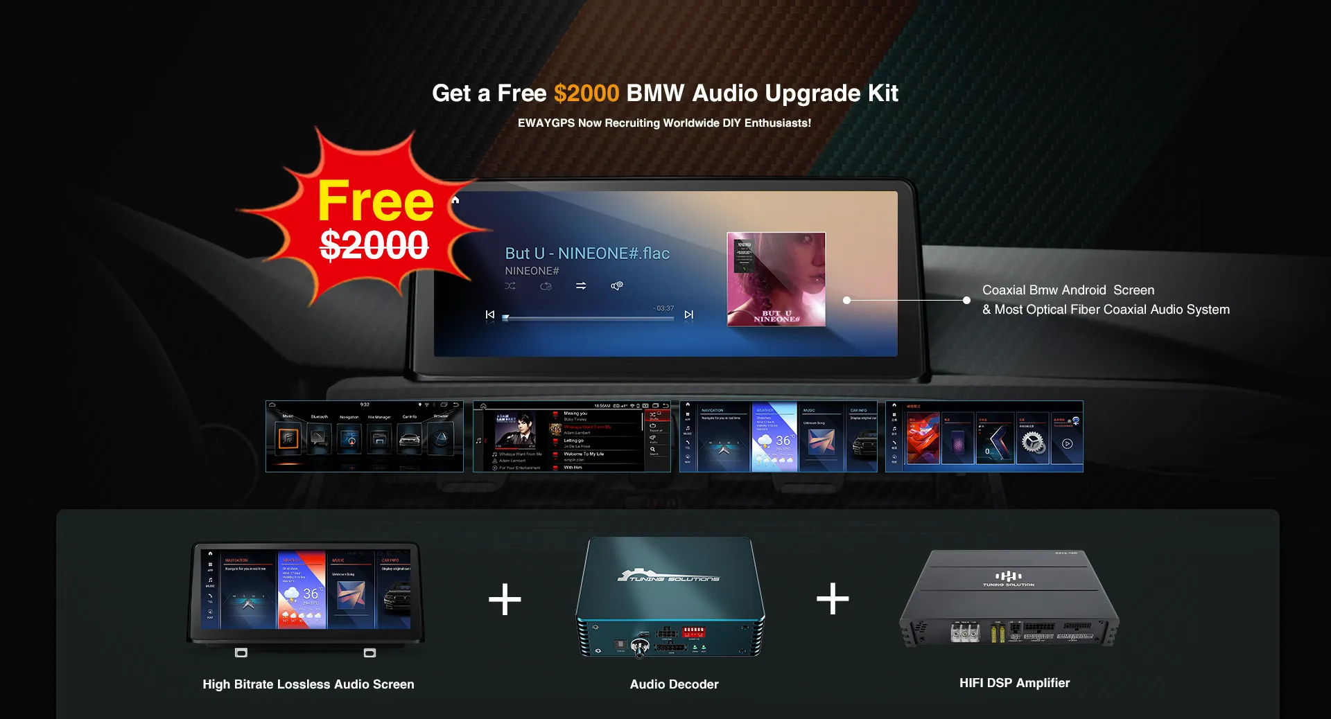 To show our sincere appreciation for BMW tuning enthusiasts’ longstanding trust in EWAYGPS, we proudly present the ‘BMW Audio Upgrade Program’ – a unique opportunity for owners with NBT/CIC/CCC/EVO systems to participate, where qualified DIY enthusiasts stand to win a FREE EWAYGPS TS10 professional audio upgrade kit valued at $2000 USD!