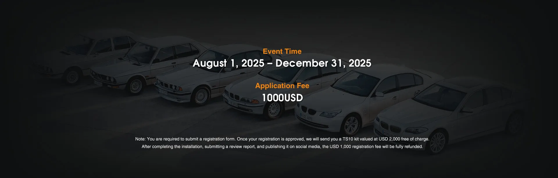 Note: You are required to submit a registration form. Once your registration is approved, we will send you a TS10 kit valued at USD 2,000 free of charge. After completing the installation, submitting a review report, and publishing it on social media, the USD 1,000 registration fee will be fully refunded.