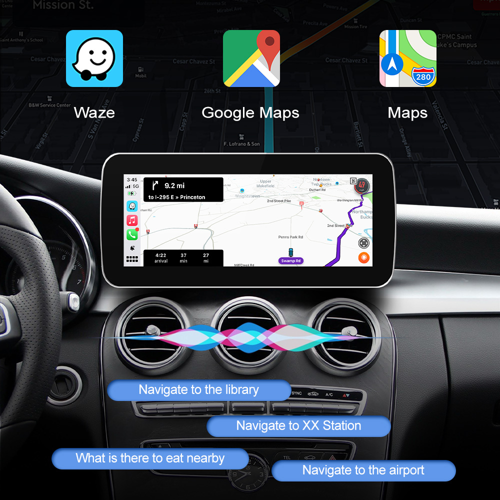Support various of Maps like Google Maps,Waze and ect…Access anywhere with one touch,