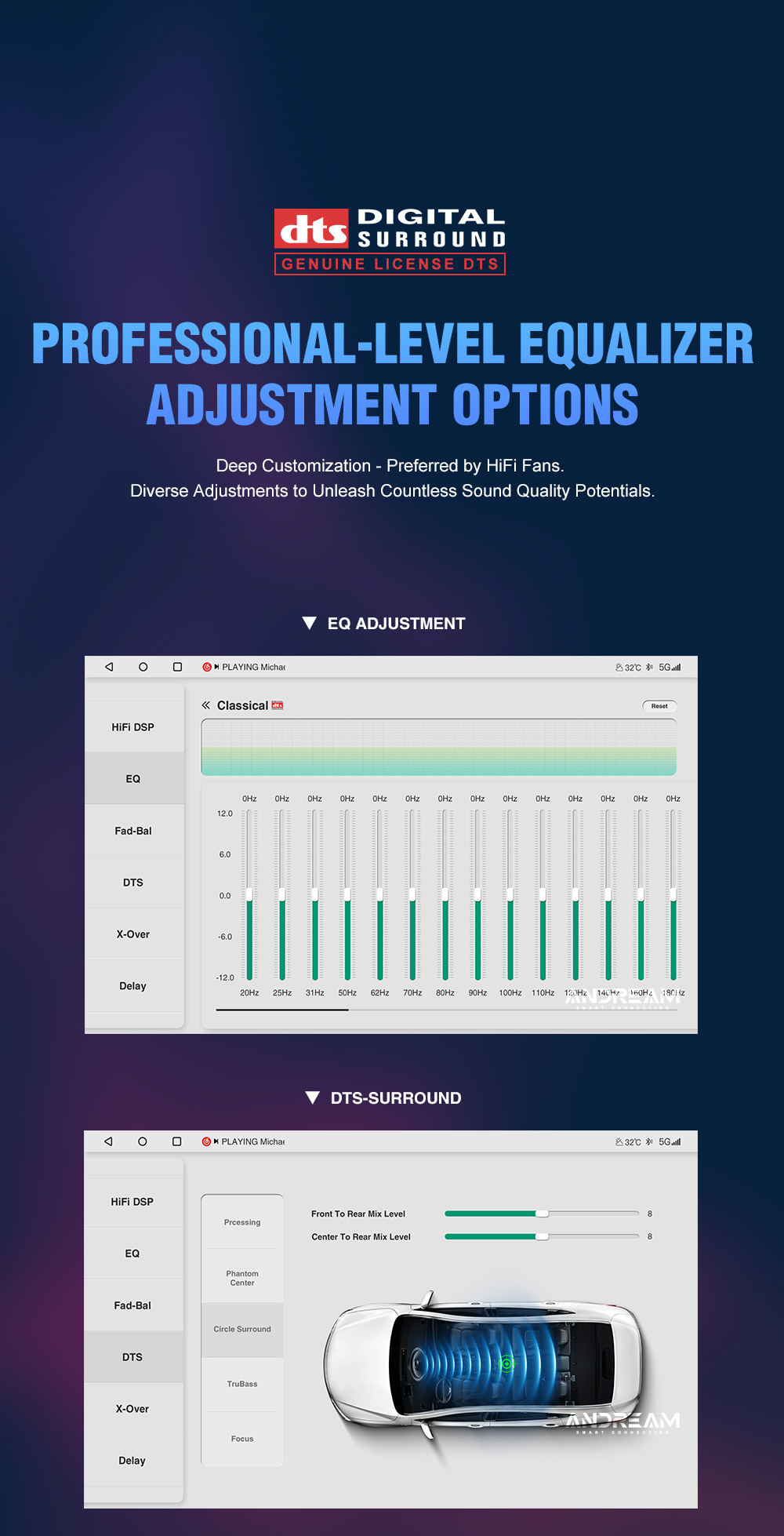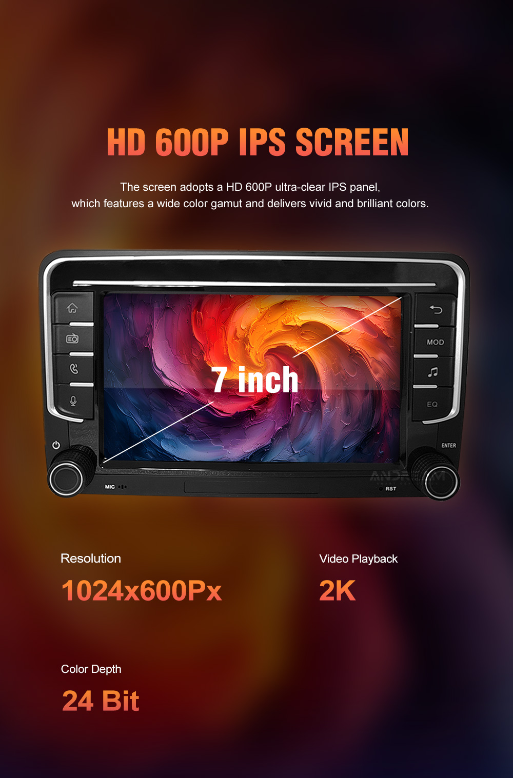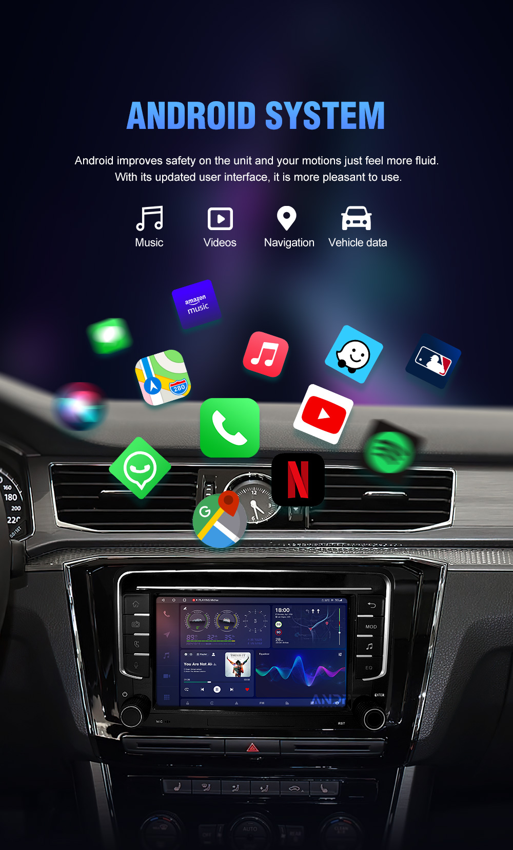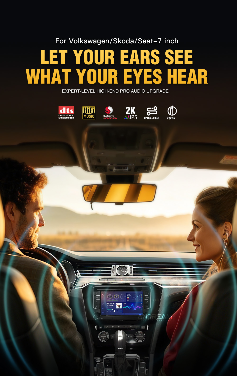 7” Android 13 sound quality upgrade navigation DTS pure digital DSP amplifier for Volkswagen SEAT Skoda integrated wireless Carplay and Android Auto
