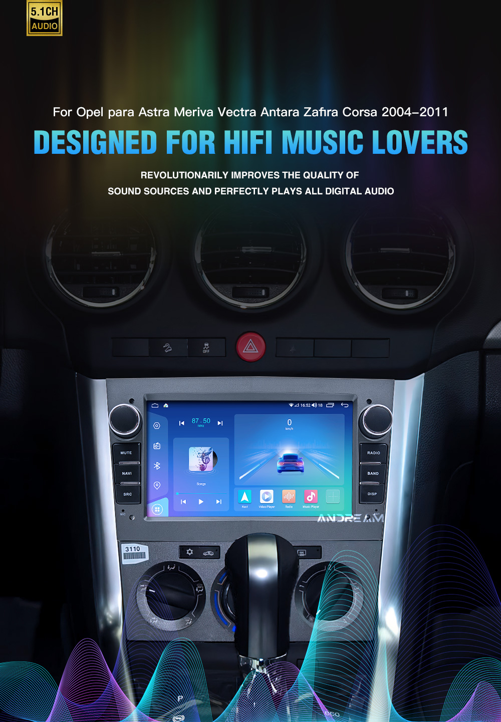 Andream Android built-in DSP CarPlay radio upgrade screen for 2004-2011 Opel with optical coaxial lossless sound output Price: