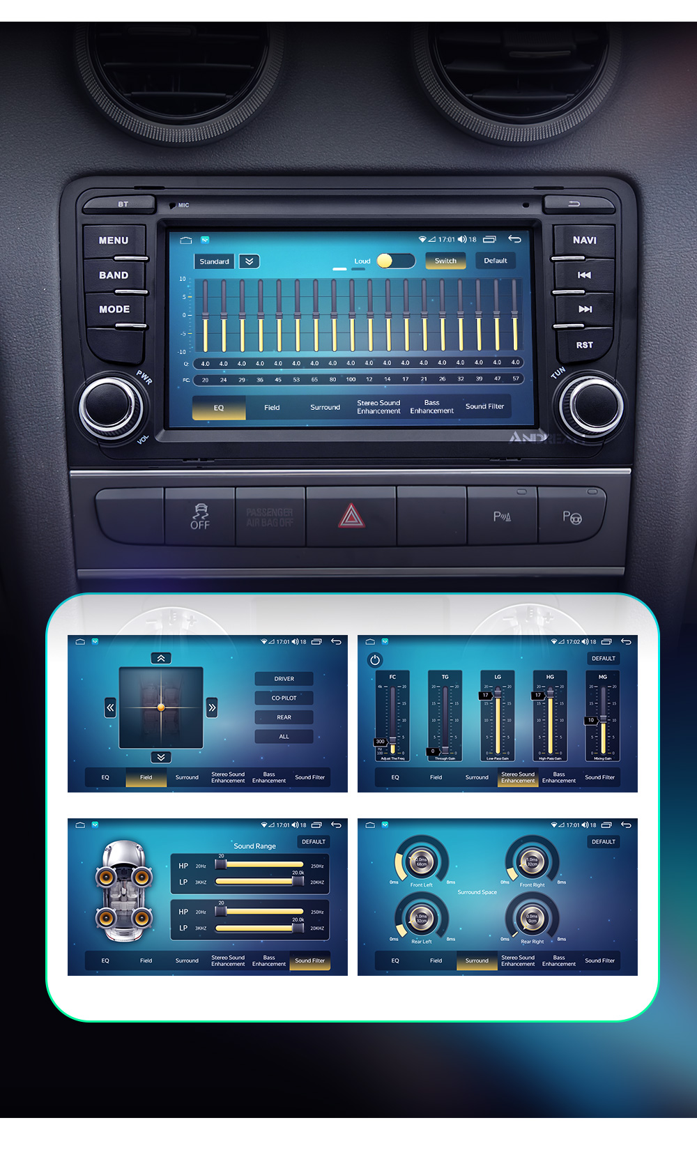 Independent front and rear EQ up to 32 bands, independent front and rear speaker adjustment, adjustable GAIN/Q value of each band EQ