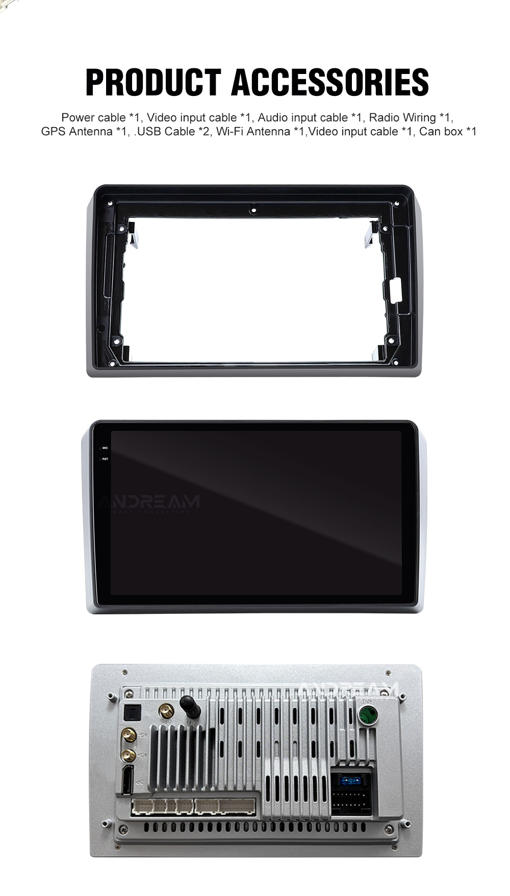 GPS Antenna *1, .USB Cable *2, Wi-Fi Antenna *1,Video input cable *1, Can box *1