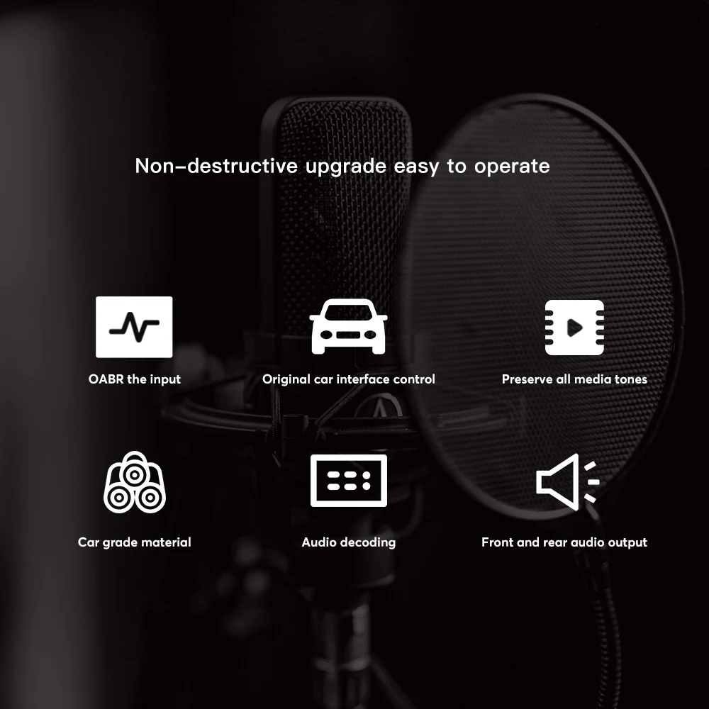 By doing so, it restores access to a clean, unprocessed sound source and enables integration with high-performance aftermarket amplifiers equipped with digital DSP functionality. This seamless conversion ensures that audiophiles can enjoy a truly refined listening experience, with significantly enhanced soundstage, clarity, and depth—ultimately achieving a professional-level audio upgrade in their vehicle.